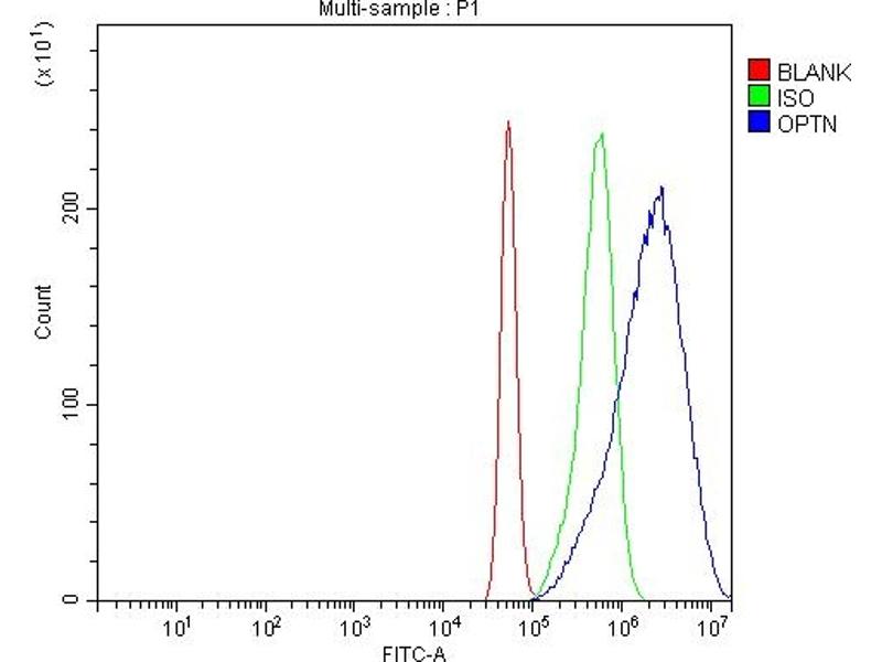 Background: OPTN is also known as NRP, FIP2 or HYPL. This gene encodes the coiled-coil containing protein optineurin. Optineurin may play a role in normal-tension glaucoma and adult-onset primary open angle glaucoma. Optineurin interacts with adenovirus E3-14.7K protein and may utilize tumor necrosis factor-alpha or Fas-ligand pathways to mediate apoptosis, inflammation or vasoconstriction. Optineurin may also function in cellular morphogenesis and membrane trafficking, vesicle trafficking, and transcription activation through its interactions with the RAB8, huntingtin, and transcription factor IIIA proteins. Alternative splicing results in multiple transcript variants encoding the same protein.