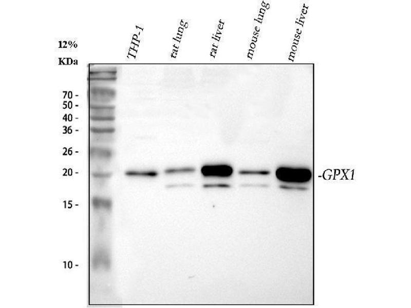 - Anti-Glutathione Peroxidase 1/GPX1 Antibody (ABIN3043834). Tested in IHC, WB applications. This antibody reacts with Human, Mouse, Rat. This is a premium antibody that guarantees superior quality, high affinity, and strong signals with minimal background in Western blot applications.