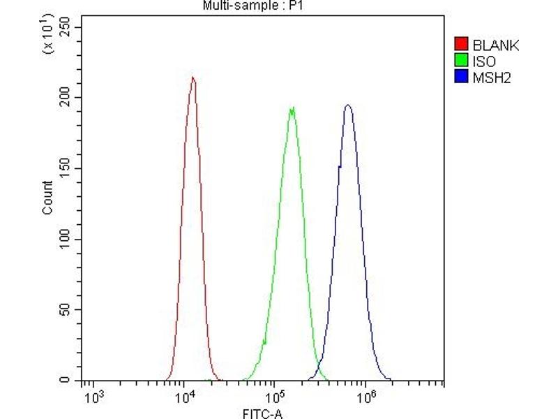 Background: DNA mismatch repair protein Msh2, also known as MutS protein homolog 2 or MSH2, is a protein that in humans is encoded by the MSH2 gene, which is located on chromosome 2. MSH2 is a tumor suppressor gene and more specifically a caretaker gene that codes for a DNA mismatch repair (MMR) protein, MSH2 which forms aheterodimer with MSH6 to make the human MutSα mismatch repair complex. It also dimerizes with MSH3 to form the MutSβ DNA repair complex. MSH2 is involved in many different forms of DNA repair, including transcription-coupled repair, homologous recombination, and base excision repair. It has been found that MSH2 may also be a coactivator of ESR1-dependent gene expression.