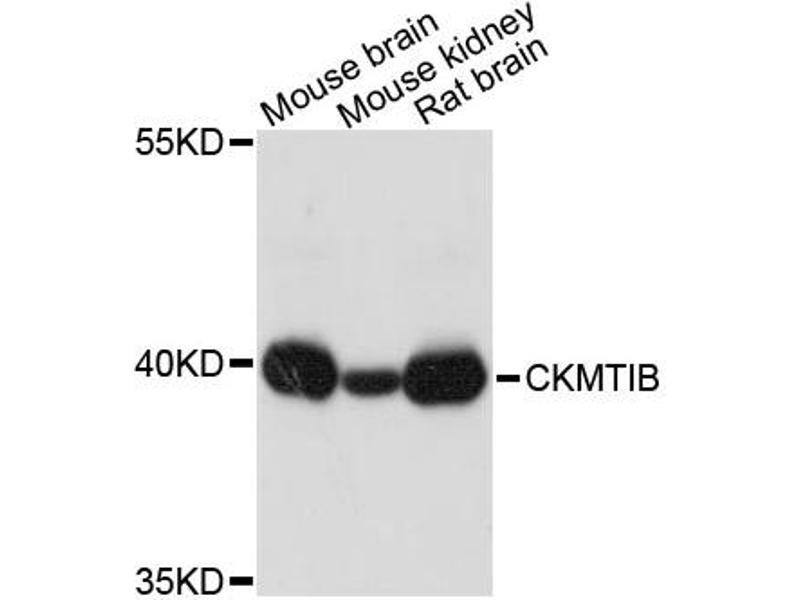 L’anticorps Lapin Polyclonal anti-CKMT1B a été validé pour WB. Il convient pour détecter CKMT1B dans des échantillons de Humain, Souris et Rat.