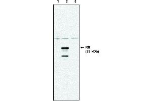 - Antibody detects recombinant Rit protein expressed in 293 cells by Western blot analysis at a concentration of 0.5 to 1 μg/mL. Detects a band of approximately 25 kDa (predicted molecular weight: 26 kDa). Does not cross-react with Rin protein. Optimal concentration should be evaluated by serial dilutions.