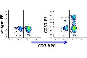 Clone HNK-1 reacts with human CD57, a 110 kDa glycoprotein, which is present on a subset of NK lymphocytes and also on a subset of T lymphocytes. It also reacts with myelin-associated glycoprotein in neuroectodermal tissue as well as cells of small cell lung carcinoma.