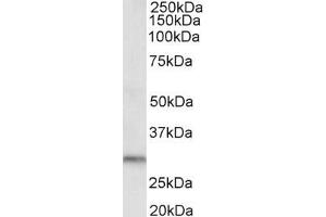 Western Blot: Approx 30 kDa band observed in Human Kidney lysates (calculated MW of 32.0 kDa according to AAF14578.1). Recommended concentration: 0.5-1 μg/mL.