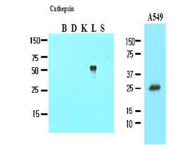 Cathepsin L, a lysosomal endopeptidase expressed in most eukaryotic cells, is a member of the papain-like family of cysteine proteinases. Cathepsin L can be induced by many different signaling events, including growth factor, secondary messenger and tumor promoters. Cathepsin L is translated as pre-procathepsin L, transferred through the Golgi apparatus as procathepsin L and then stored in lysosomes as mature cathepsin L.Synonyms: CTSL, CTSL1, Cathepsin-L1, MEP, Major excreted protein