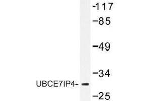 Ubiquitination is an important mechanism through which three classes of enzymes act in concert to target short-lived or abnormal proteins for destruction.The three classes of enzymes involved in ubiquitination are the ubiquitinactivating enzymes (E1s), the ubiquitin-conjugating enzymes (E2s) and the ubiquitin-protein ligases (E3s). UBCE7IP4 (Ubiquitin-conjugating enzyme 7- interacting protein 4), also known as RNF144A (RING finger protein 144A), KIAA0161 or RNF144, is a 292 amino acid single-pass membrane protein that contains one RING-type zinc finger and two IBR-type zinc fingers. Functioning as an E3 ubiquitin-protein ligase, UBCE7IP4 accepts ubiquitin (in the form of a thioester) from E2 ubiquitin-conjugating enzymes, such as UBC8 and UBCH7, and transfers that ubiquitin residue to target substrates. Via its RING finger, UBCE7IP4 may play a role in protein-DNA and protein-protein interactions throughout the cell.Synonyms: KIAA0161, Probable E3 ubiquitin-protein ligase RNF144A, RING finger protein 144A, RNF144, UbcM4-interacting protein 4, Ubiquitin-conjugating enzyme 7-interacting protein 4, Uip4