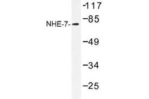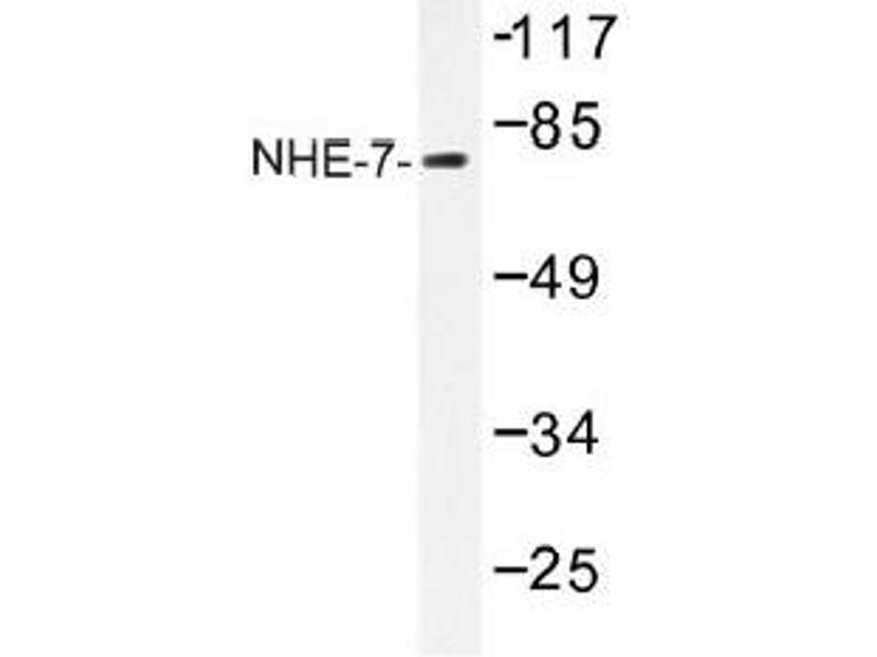 - NHE-7 antibody detects endogenous levels of NHE-7 protein.(region surrounding Asp566)
