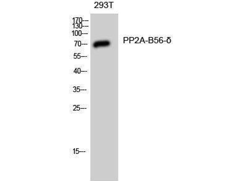 PP2A-B56-δ Polyclonal Antibody detects endogenous levels of PP2A-B56-δ protein.