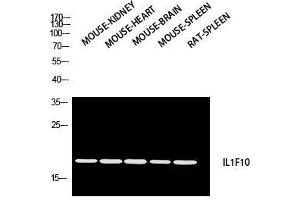 IL-1F10 Polyclonal Antibody detects endogenous levels of IL-1F10 protein.