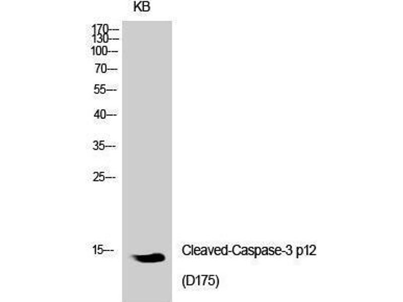 - Cleaved-Caspase-3 p12 (D175) Polyclonal Antibody detects endogenous levels of fragment of activated Caspase-3 p12 protein resulting from cleavage adjacent to D175.