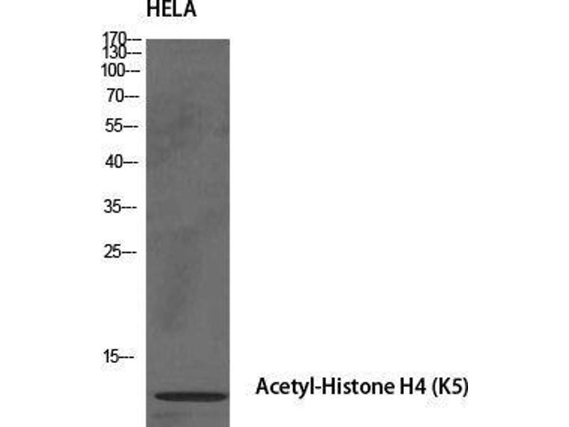 - Acetyl-Histone H4 (K5) Polyclonal Antibody detects endogenous levels of Histone H4 protein only when acetylated at K5.