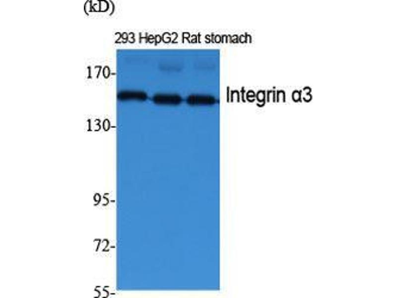 Integrin α3 Polyclonal Antibody detects endogenous levels of Integrin α3 protein.