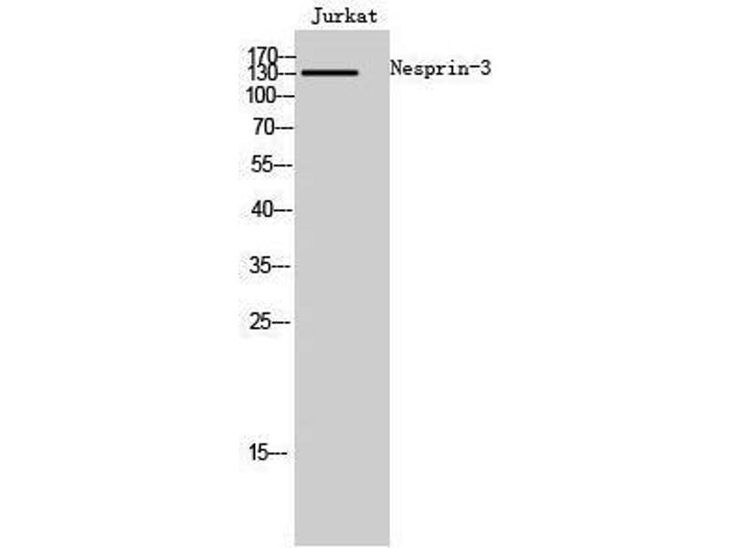 Nesprin-3 Polyclonal Antibody detects endogenous levels of Nesprin-3 protein.