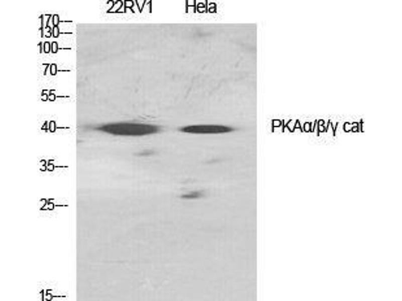 PKAα/β/γ cat Polyclonal Antibody detects endogenous levels of PKAα/β/γ cat protein.
