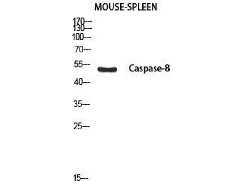 Cleaved-Caspase-8 p18 (S217) Polyclonal Antibody detects endogenous levels of Cleaved-Caspase-8 p18 (S217) protein.