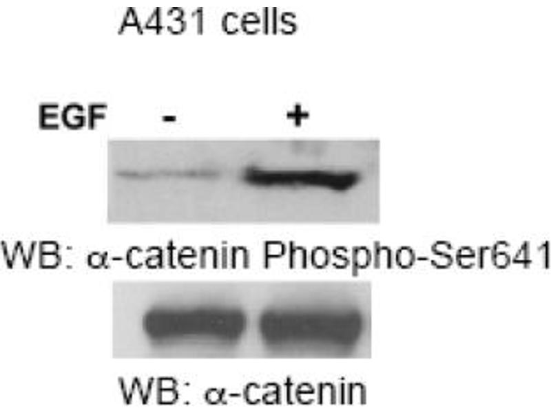 The antiserum was produced against synthesized non-phosphopeptide derived from human Alpha-Catenin around the phosphorylation site of Serine 641 (D-D-Sp-D-F).