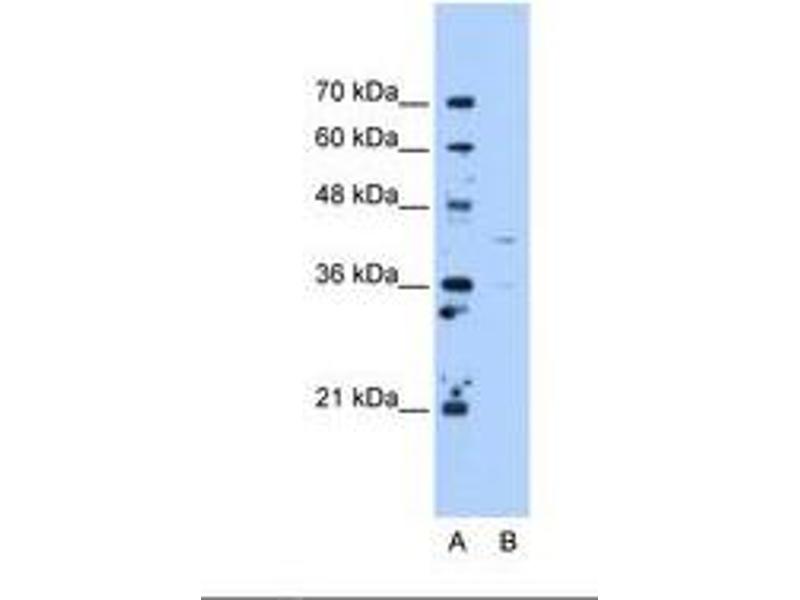 Synthetic peptide from C-Terminus of human OAT (P04181, NP_000265). Percent identity by BLAST analysis: Human, Chimpanzee, Orangutan, Gibbon, Monkey, Galago, Marmoset, Mouse, Rat, Hamster, Elephant, Panda, Dog, Bovine, Rabbit, Horse, Pig, Opossum, Guinea pig, Turkey, Zebra finch, Chicken, Platypus, Lizard, Xenopus, Seabass, Salmon, Stickleback (100%), Drosophila (92%).