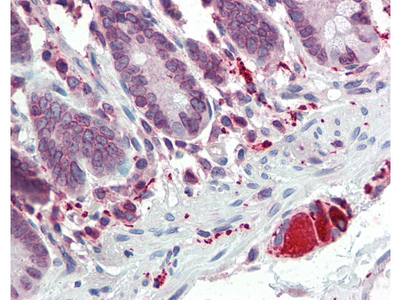 Usage: Immunohistochemistry: This antibody was validated for use in immunohistochemistry on a panel of 21 formalin-fixed, paraffin-embedded (FFPE) human tissues after heat induced antigen retrieval in pH 6.0 citrate buffer. After incubation with the primary antibody, slides were incubated with biotinylated secondary antibody, followed by alkaline phosphatase-streptavidin and chromogen. The stained slides were evaluated by a pathologist to confirm staining specificity. The optimal working concentration for this antibody was determined to be 5 μg/mL. -