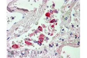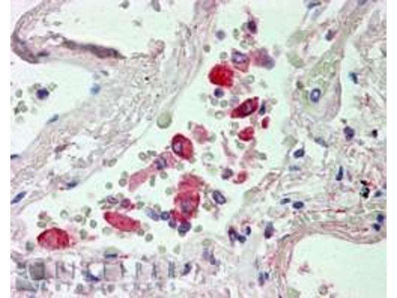 Immunohistochemistry: In paraffin embedded Human Lung shows staining of lymphocytes in the vasculature.. Recommended concentration, 2-3 μg/mL.