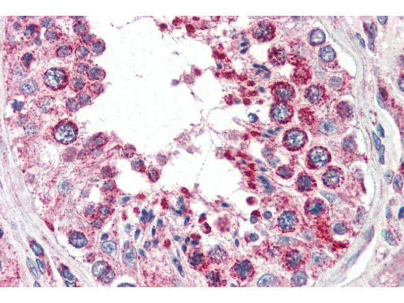 Immunohistochemistry: Paraffin embedded Human Thyroid and Testis. Recommended concentration: 2.5 μg/mL.
