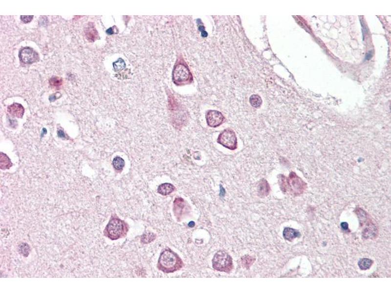 Immunohistochemistry: Paraffin embedded Human Brain (Cortex). Recommended concentration: 3.75 μg/mL.