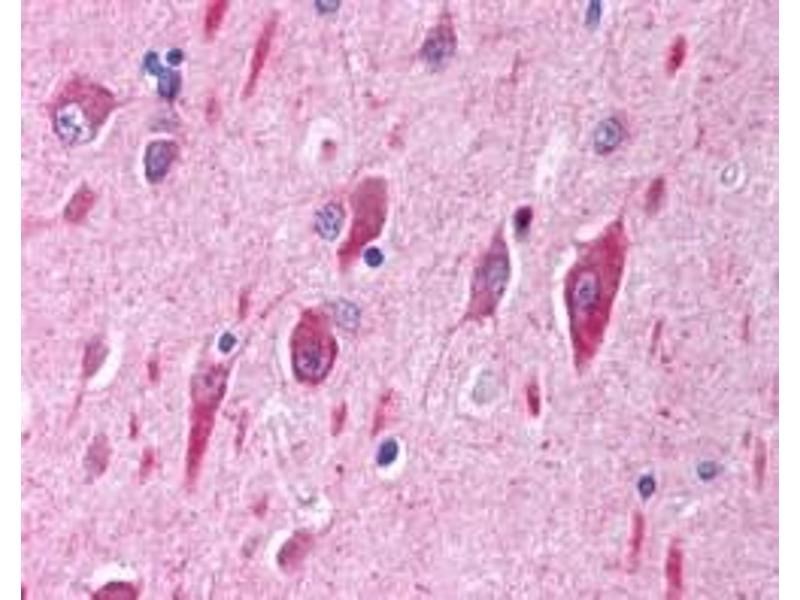 Immunohistochemistry: In paraffin embedded Human Brain (Cerebral Cortex) shows cytoplasm stained in the cell bodies. Recommended concentration: 2-3 μg/mL. Paraffin embedded Human Heart. Recommended concentration: 5 μg/mL. This antibody has been successfull