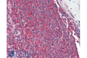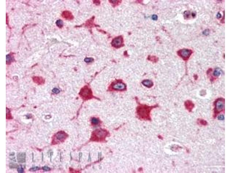 Immunohistochemistry: Paraffin embedded Human Cerebral Cortex and Spleen. Recommended concentration: 2.5 μg/mL.