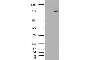 Western Blot: Approx 110 kDa band observed in Human Pancreas lysates (calculated MW of 93.9 kDa according to NP_115949.3). In transfected HEK293 transiently expressing SMEK1 a band of approx. 95 kDa is observed. This band is not observed in the non-transfec