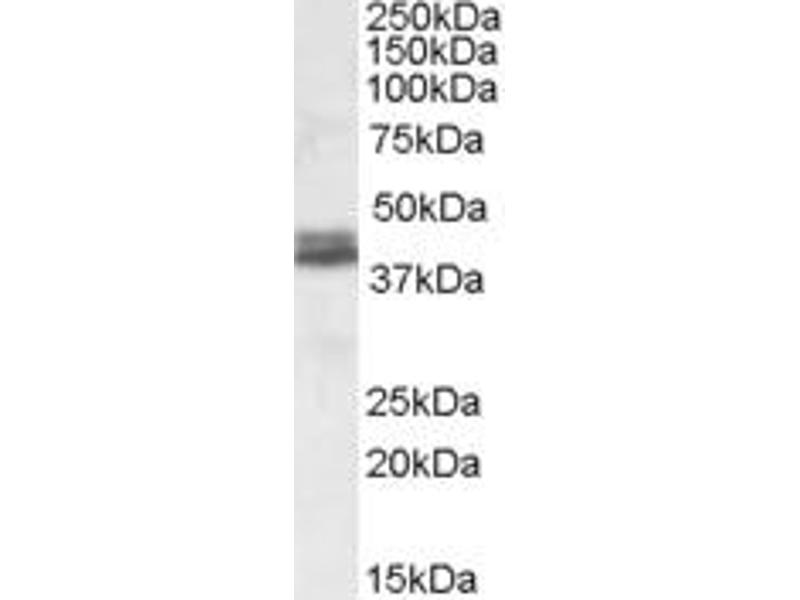 Western Blot: Approx 38+39 kDa bands observed in Human Brain (Cerebellum) lysates (calculated MW of 37.0 kDa according to NP_001020750.1 and of 38.4 kDa according to NP_110435.1). Recommended concentration: 0.1-0.3 μg/mL.