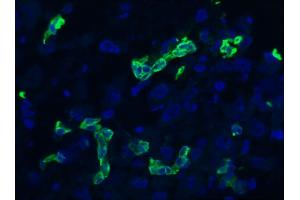 RCK108 reacts exclusively with cytokeratin 19 which is present in glandular-type epithelia and most carcinomas. Does not react with hepatocytes and hepatocellular carcinoma. RCK108 is particularly well suited for use in immunohistochemistry on paraffin-embedded tissues after pretreatment with pepsin or trypsin. RCK108 is also useful for immunocytochemistry, immunohistochemistry on frozen sections, immunoblotting and flow cytometry. Optimal antibody dilution should be determined by titration, recommended range is 1:100 - 1:200 for flow cytometry, and for immunohistochemistry with avidin-biotinylated horseradish peroxidase complex (ABC) as detection reagent, and 1:100 - 1:1000 for immunoblotting applications.