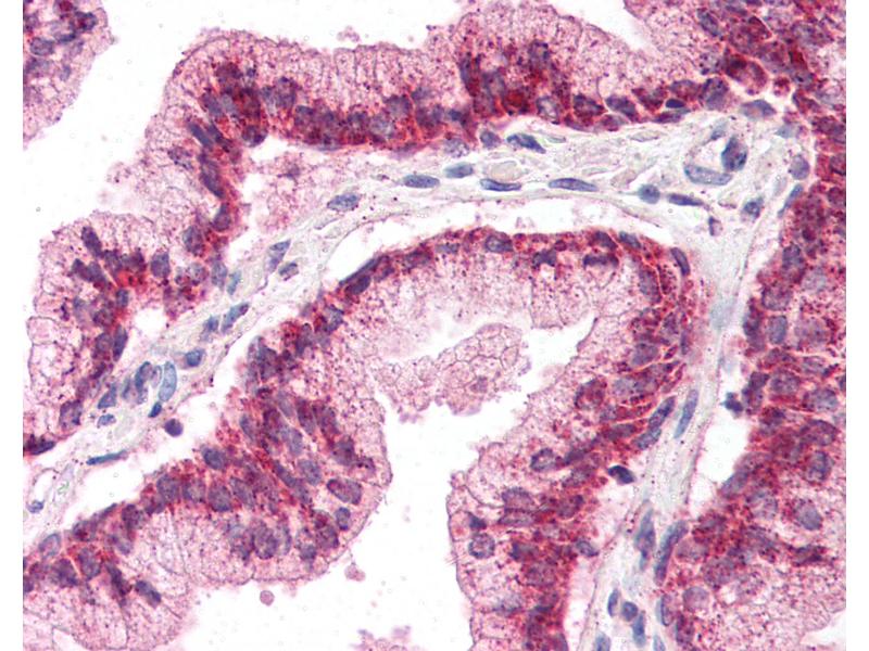 Usage: Immunohistochemistry: This antibody was validated for use in immunohistochemistry on a panel of 21 formalin-fixed, paraffin-embedded (FFPE) human tissues after heat induced antigen retrieval in pH 6.0 citrate buffer. After incubation with the primary antibody, slides were incubated with biotinylated secondary antibody, followed by alkaline phosphatase-streptavidin and chromogen. The stained slides were evaluated by a pathologist to confirm staining specificity. The optimal working concentration for this antibody was determined to be 5 μg/mL. -