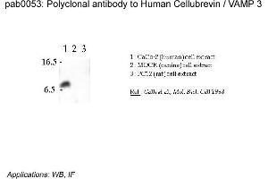 - Reacts with human 10 kDa VAMP-3 of CaCo-2 cell extract