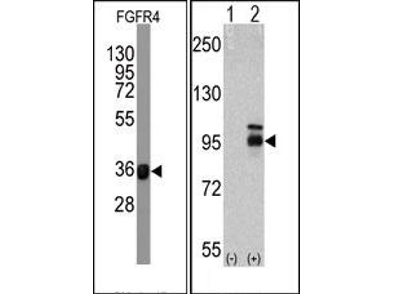 FGFR4 is a member of the fibroblast growth factor receptor family, where amino acid sequence is highly conserved between members and throughout evolution. FGFR family members differ from one another in their ligand affinities and tissue distribution. A full-length representative protein would consist of an extracellular region, composed of three immunoglobulin-like domains, a single hydrophobic membrane-spanning segment and a cytoplasmic tyrosine kinase domain. The extracellular portion of the protein interacts with fibroblast growth factors, setting in motion a cascade of downstream signals, ultimately influencing mitogenesis and differentiation. This particular family member preferentially binds acidic fibroblast growth factor and, although its specific function is unknown, it is overexpressed in gynecological tumor samples, suggesting a role in breast and ovarian tumorigenesis.Synonyms: FGFR-4, Fibroblast growth factor receptor 4, JTK2, TKF