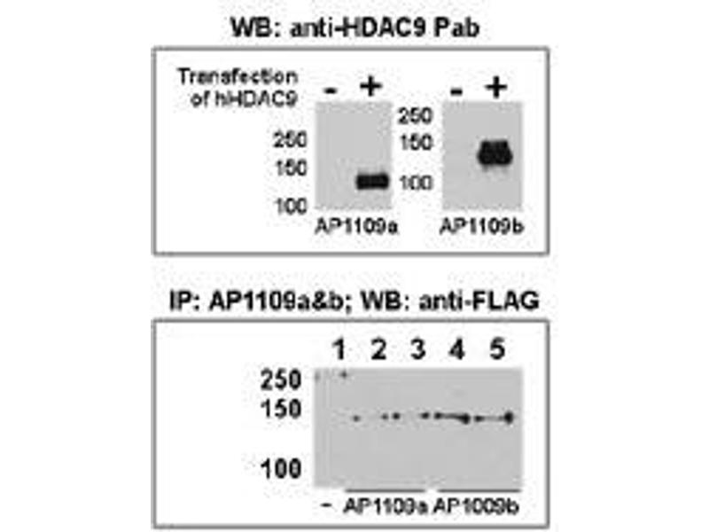 Histones play a critical role in transcriptional regulation, cell cycle progression, and developmental events. Histone acetylation/deacetylation alters chromosome structure and affects transcription factor access to DNA. The protein encoded by this gene has sequence homology to members of the histone deacetylase family. This gene is orthologous to the Xenopus and mouse MITR genes. The MITR protein lacks the histone deacetylase catalytic domain. It represses MEF2 activity through recruitment of multicomponent corepressor complexes that include CtBP and HDACs. This encoded protein may play a role in hematopoiesis. Multiple alternatively spliced transcripts have been described for this gene but the full-length nature of some of them has not been determined.Synonyms: HD7B, HD9, HDAC7B, HDRP, Histone deacetylase 9, Histone deacetylase-related protein, KIAA0744, MEF2-interacting transcription repressor MITR, MITR