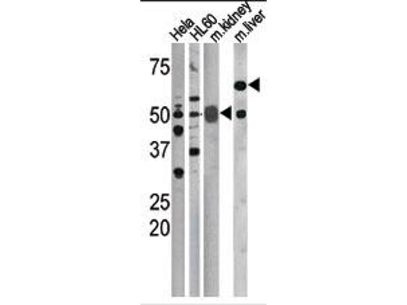 This antibody is generated from rabbits immunized with a KLH conjugated synthetic phosphopeptide corresponding to amino acid residues surrounding S75 of human Cdc25A.