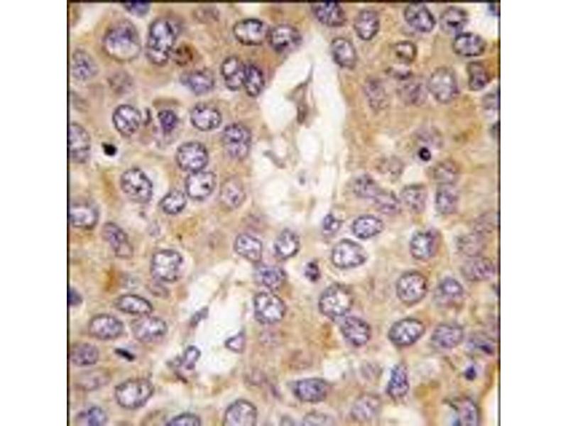 Protein kinases are enzymes that transfer a phosphate group from a phosphate donor, generally the g phosphate of ATP, onto an acceptor amino acid in a substrate protein. By this basic mechanism, protein kinases mediate most of the signal transduction in eukaryotic cells, regulating cellular metabolism, transcription, cell cycle progression, cytoskeletal rearrangement and cell movement, apoptosis, and differentiation. With more than 500 gene products, the protein kinase family is one of the largest families of proteins in eukaryotes. The family has been classified in 8 major groups based on sequence comparison of their tyrosine (PTK) or serine/threonine (STK) kinase catalytic domains. The casein kinase 1 (CK1) group consists of 12 kinases including CK1, TTBK (tau tubulin kinase), and VRK (vaccinia-related kinase) families. The receptor guanylate cyclase (RGC) group consists of 5 kinases similar in domain sequence to TKs (ANP, CYG).Synonyms: CKI-gamma 2, Casein kinase I isoform gamma-2