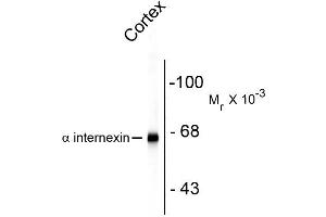 - Our Anti-Alpha Internexin/ NF-66 Antibody primary antibody is mouse monoclonal. It detects human, mouse, and rat Alpha Internexin/ NF-66 and is protein g purified. It is great for use in ELISA, WB, IHC, ICC.