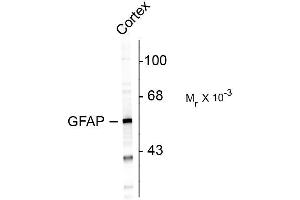 Specific for the ~50kDa GFAP protein. A lower band at ~45kDa is a proteolytic fragment derived from the GFAP molecule. It is expected that the antibody will react with other mammalian tissues.