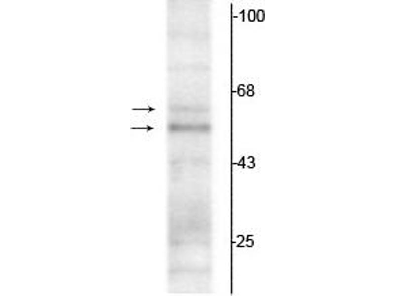 - Specific for endogenous levels of the ~50 kDa TR-α1 and the ~58 kDa TR-α2 proteins.