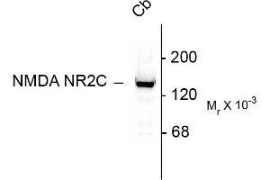 - Specific for endogenous levels of the ~140 kDa NR2C subunit of the NMDA receptor. Also labels the ~180 kDa NR2A and the ~180 kDa NR2B subunits of the NMDA receptor. Immunolabeling is blocked by preadsorption of antibody with the immunogen that was used to generate the antibody.
