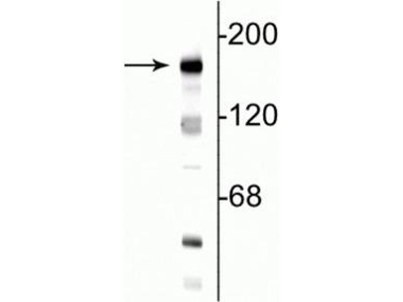 - Specific for endogenous levels of the ~180 kDa NR2B subunit of the NMDA receptor.