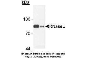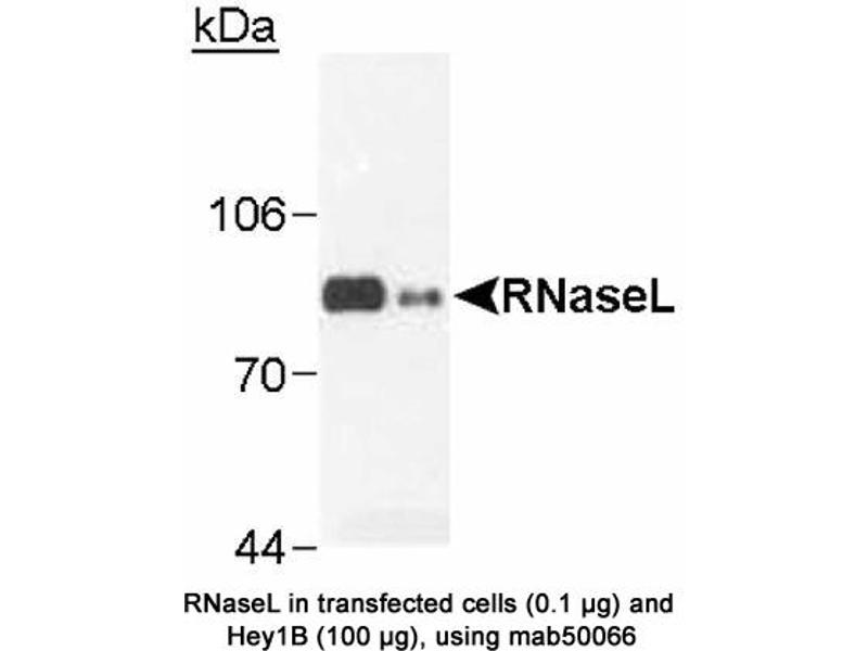 - Cross reacts with hamster RNaseL protein. Does not cross react with mouse protein. Not tested in other species.