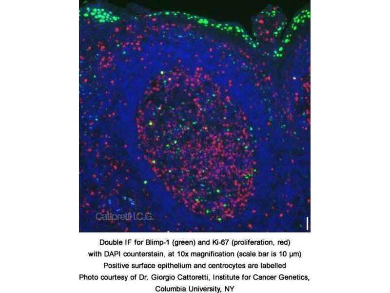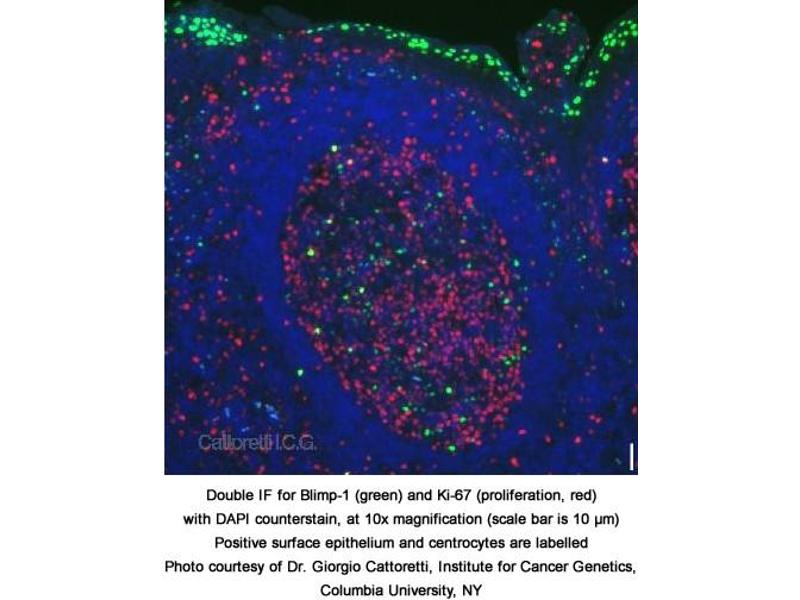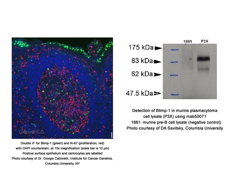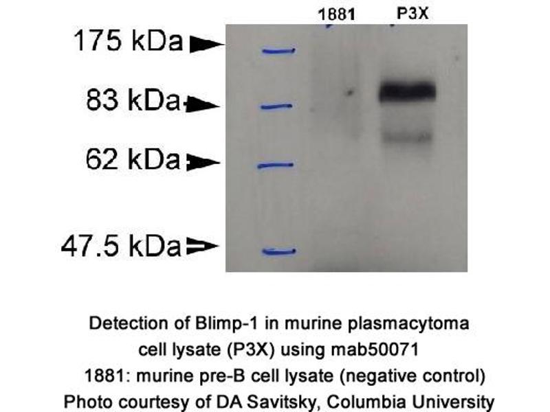 - Reacts with ~98 kDa BLIMP-1 from mouse, pig and human