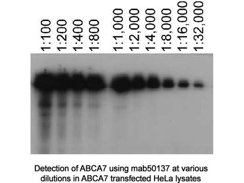 - Reacts with mouse ~237 kDa ABCA7 protein