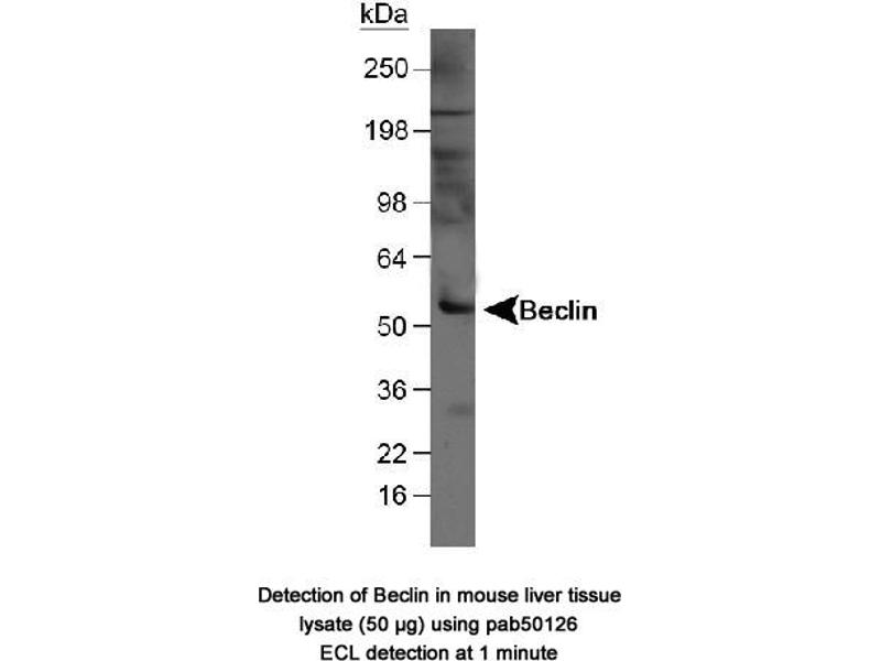 - Reacts with human ~52 kDa Beclin 1 protein