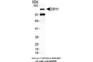 - Synthetic peptide made to an internal region (within residues 500-600) of the mouse CD11b/c protein