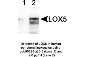 - Reacts with human ~80 kDa 5-lipoxygenase protein