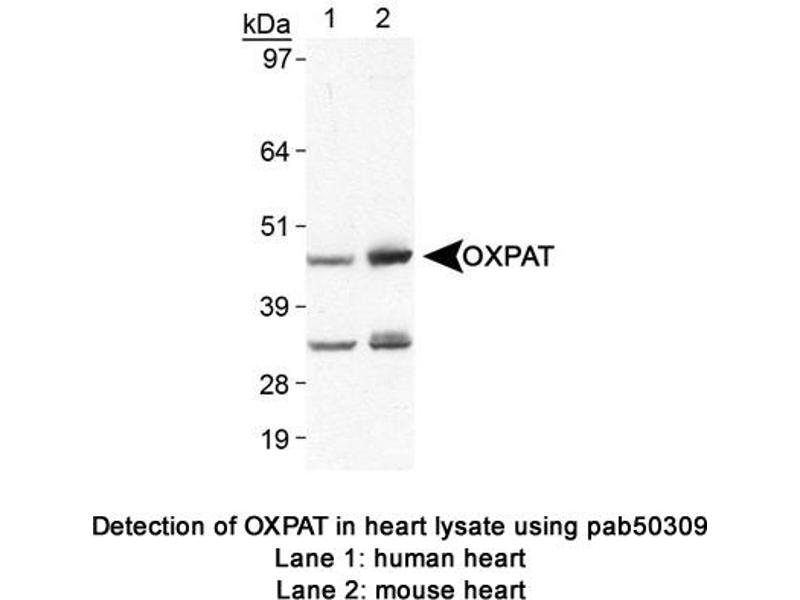 - Synthetic peptide made to a C-terminal region of the mouse OXPAT protein within residues 400-463