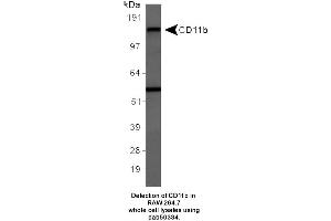 - Synthetic peptide made to an internal region (within residues 250-350) of the mouse CD11b protein