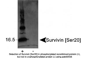 - A synthetic peptide surrounding the phosphorylated serine 20 of the human Survivin protein. [Swiss-Prot #O15392]