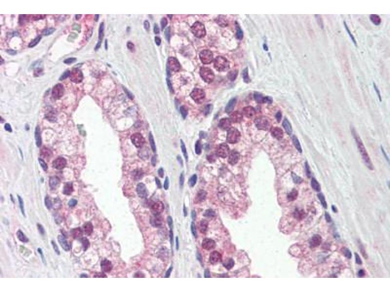 Usage: Immunohistochemistry: This antibody was validated for use in immunohistochemistry on a panel of 21 formalin-fixed, paraffin-embedded (FFPE) human tissues after heat induced antigen retrieval in pH 6.0 citrate buffer. After incubation with the primary antibody, slides were incubated with biotinylated secondary antibody, followed by alkaline phosphatase-streptavidin and chromogen. The stained slides were evaluated by a pathologist to confirm staining specificity. The optimal working concentration for this antibody was determined to be 5 μg/mL. -